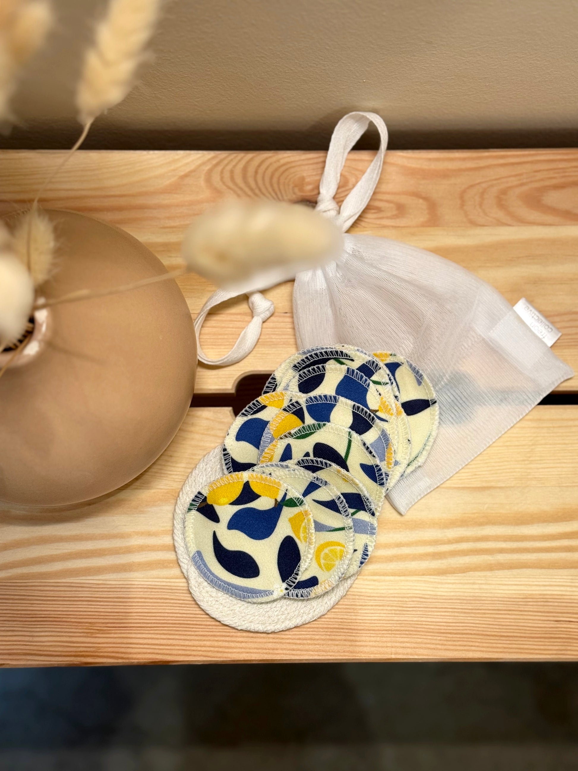 NOTE: Please note that all cotton rounds are handmade by us in our Toronto studio. Product may differ slightly in appearance and colour depending on the batch. Additionally, our cotton rounds can be used to remove makeup however, as with all reusable cotton rounds, heavy makeup removal may stain the cotton rounds.