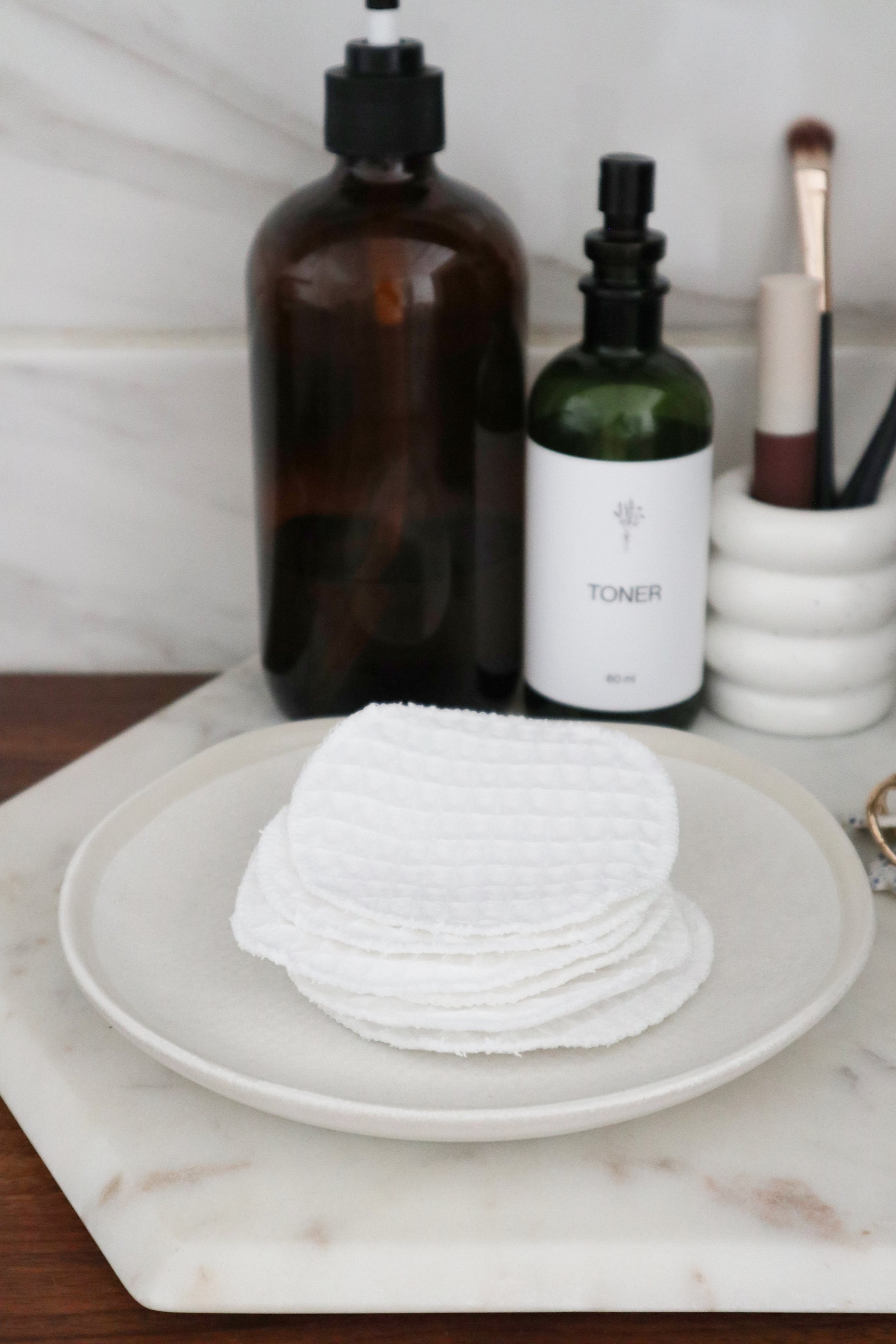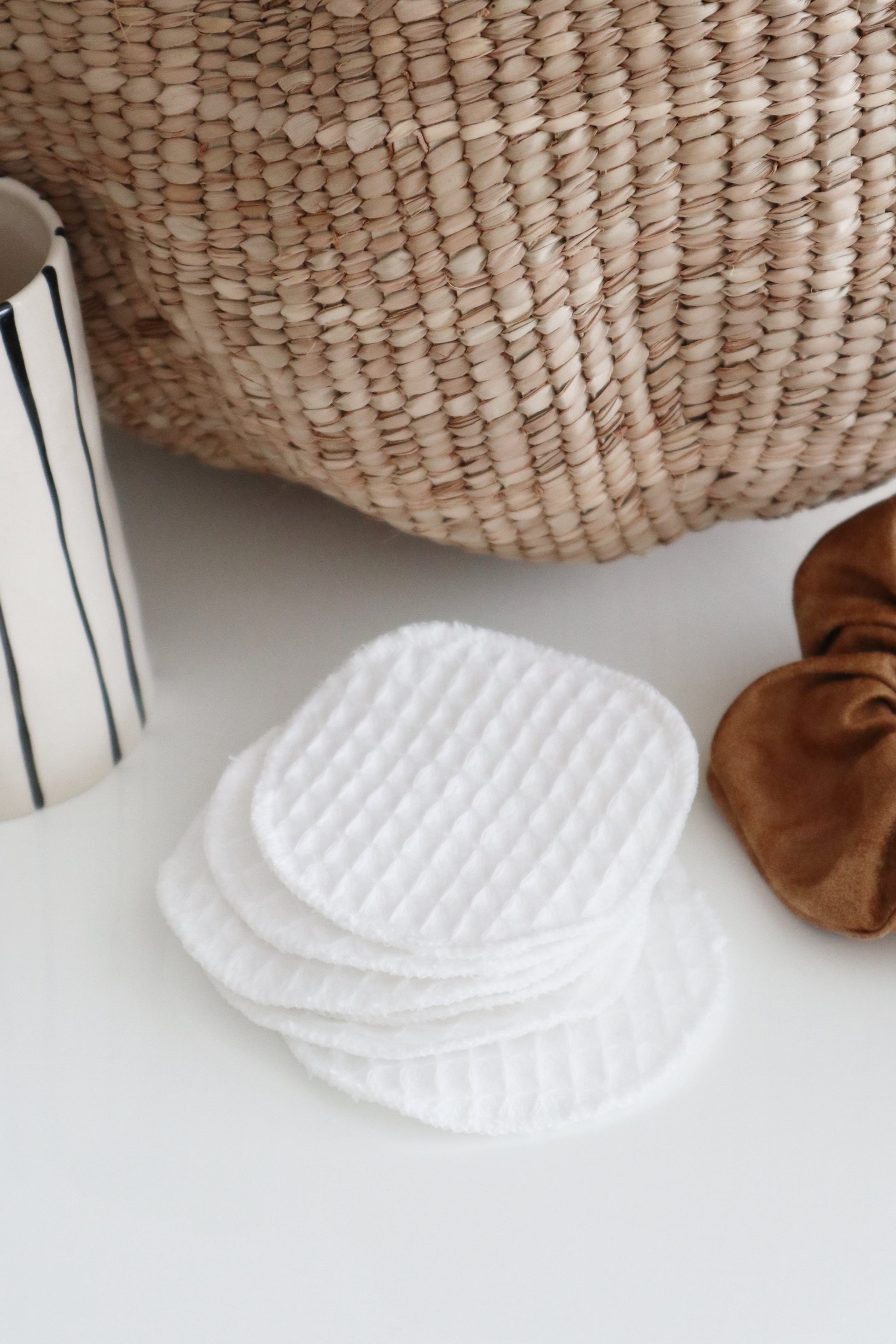 To wash, put used cotton rounds in a mesh bag and to your usual laundry load, lay flat to dry, and reuse again!